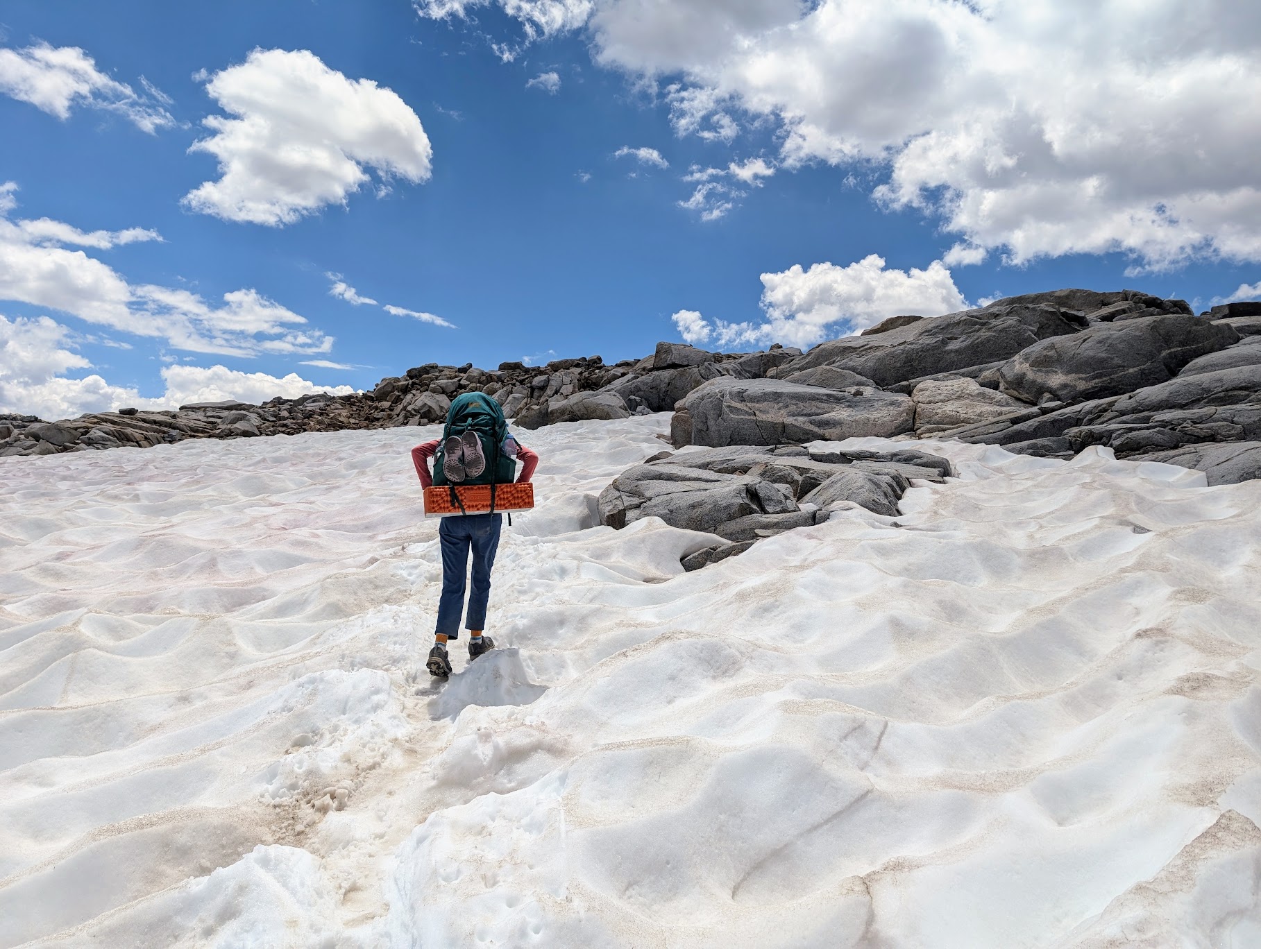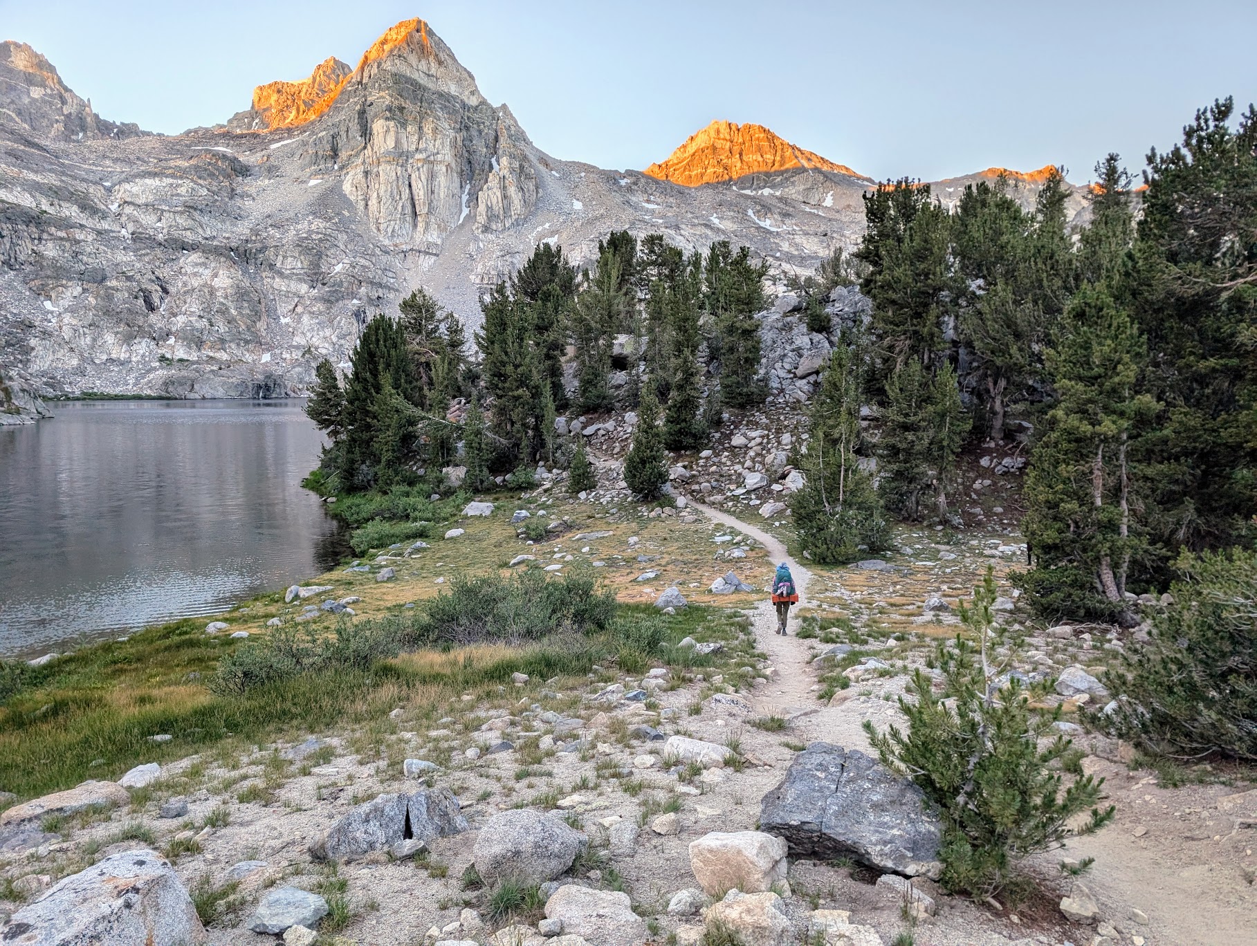 As expected from the Sierra Nevada, the scenery along the way was breathtaking: crystal-clear alpine lakes surrounded by jagged granite peaks, some still holding snow, and rushing streams. To me, this combination of water and rock is one of the most beautiful things in the world. This section felt more physically challenging than our last one, mainly due to the five high mountain passes we crossed: Bishop, Mather, Pinchot, Glen, and Forester (the last of which is the highest pass on the JMT at 13,153 ft).
