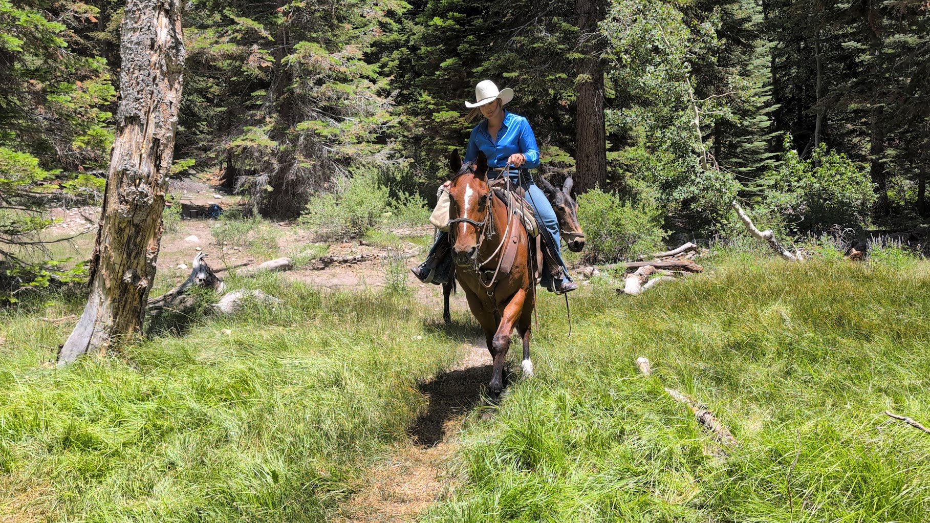One of the most complex challenges on the JMT is food management. The requirement to use a bear canister limits the amount of food you can carry, and in our case, we only had enough for about four of our eight days. While most hikers descend from the trail to nearby towns to resupply (a detour that adds many miles), we opted for a more unique option: a packer service that uses a mule train to bring food and supplies to hikers on the trail. We had sent a bucket of food in advance to Cedar Grove in Sequoia National Park. At our pre-arranged meeting point, a charming packer with a Southern accent arrived, leading two horses (or maybe mules) carrying our food. After days of subsisting on freeze-dried meals and tuna tortillas, the chilled fruit salad from a can felt like a Michelin-star dish. It was, without a doubt, the culinary highlight of our trip.